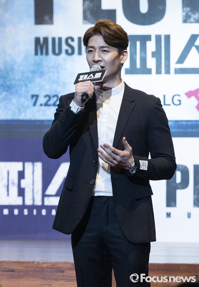 (서울=포커스뉴스) 30일 오후 서울 성동구 디노체 컨벤션에서 열린 뮤지컬 '페스트' 제작발표회 참석한 배우 손호영이 뮤지컬넘버를 시연하고 있다.