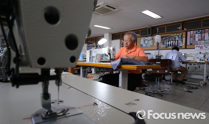 (청주=포커스뉴스) 30일 오후 충북 청주시 서원대학교에서 열린 충북 장애인기능경기대회 양복, 양장, 한복 종목 참가자가 과제를 수행하고 있다.