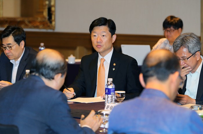 (서울=포커스뉴스) 우태희 산업통상자원부 차관이 30일 서울 리츠칼튼호텔 금강홀에서 열린 에너지신산업 3대 모델 업계 간담회에 참석해 간담회를 주재하고 있다. 이날 간담회에는 김희집, 부경진, 문승일 서울대 교수, 박주헌 에너지경제연구원장, 황진택 에너지기술평가원장, 김형진 녹색에너지연구원장, 황우현 한국전력공사 단장, 김지섭 LG CNS 상무, 이승상 KCC 이사, 조호규 현대건설 상무, 김인택 에너지공단 이사 등 산학연 전문가가 참석했다. <사진제공=산업통상자원부>