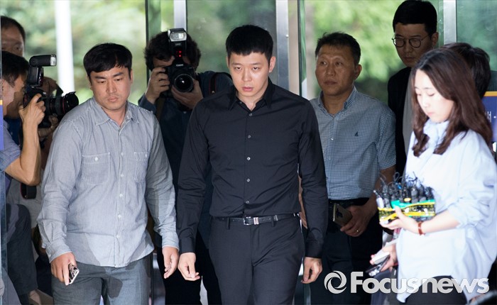 (서울=포커스뉴스) 성폭행 혐의로 4명의 여성에게 연이어 피소된 가수 겸 배우 박유천이 30일 오후 서울 강남경찰서로 출석하고 있다.