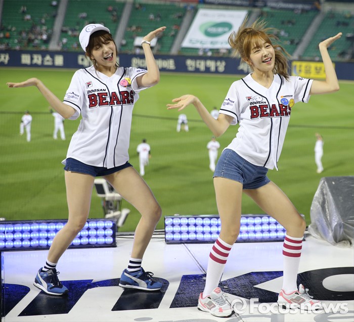 (서울=포커스뉴스) 30일 서울 잠실구장에서 열린 2016 프로야구 NC-두산 경기에서 인기 걸그룹 '라붐'이 경기전 시구에 이어 클리닝타임에 응원단상에 올라 귀엽고 깜찍한 율동으로 관중들에게 한 여름의 더위를 식혀주는 깜짝 공연을 펼쳤다.