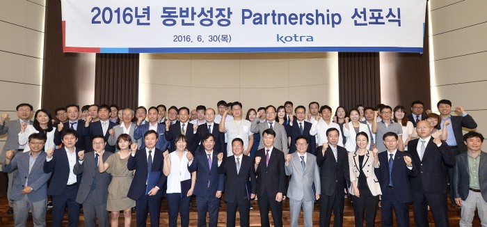 이날 선포식에서는 이태식 코트라 동반성장위원장 겸 부사장이 각 협력사 대표에게 파트너십 인증서를 전달하고, 5대 협력분야별(△운송·장치 △여행 △통역 △시스템 △인쇄) 협의체를 구성해 관련 부서와 네트워킹을 진행했다.
