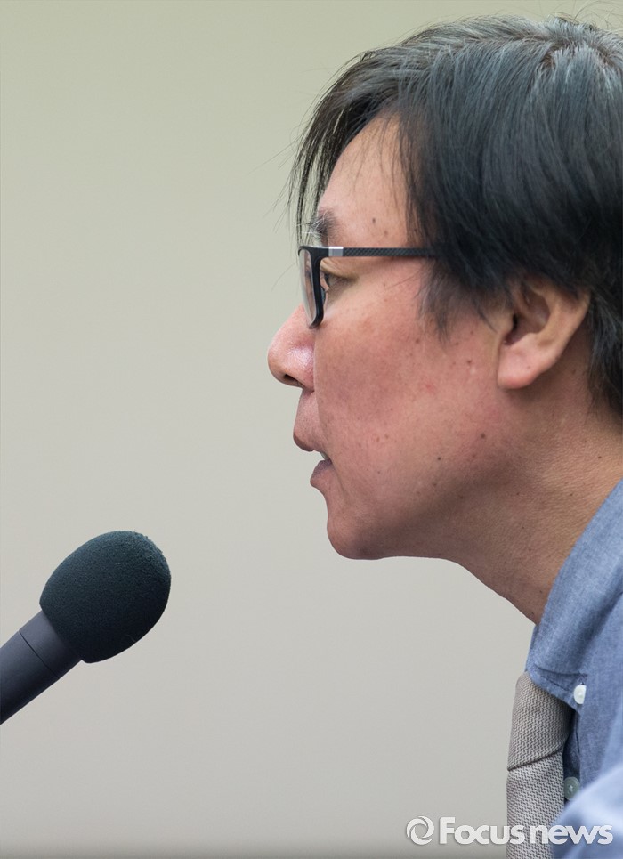 (서울=포커스뉴스) 이동열 투씨엠 대표가 1일 오전 서울 중구 프레스센터에서 열린 제2롯데월드 입면 표절의혹 기자회견에 참석해 발언하고 있다. 이 대표는 자사 디자인 '스타 컬렉션'을 45도 회전하면 제2롯데월드 에비뉴엘관의 디자인과 일치한다고 주장했다.