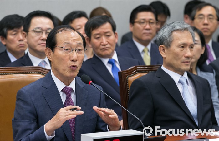 (서울=포커스뉴스) 1일 오전 서울 여의도 국회에서 열린 운영위원회 전체회의에 참석한 이원종 대통령비서실장이 의원들의 질의에 답하고 있다. 오른쪽은 김관진 국가안보실장.