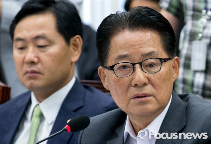(서울=포커스뉴스) 1일 오전 서울 여의도 국회에서 열린 운영위원회 전체회의에 참석한 박지원(오른쪽) 국민의당 원내대표가 의사진행 발언을 하고 있다.