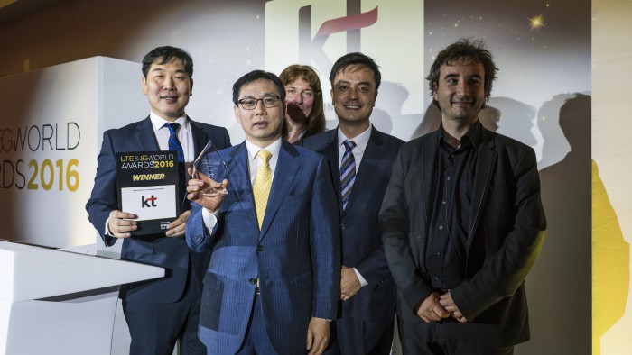 (서울=포커스뉴스) KT는 30일 영국 런던에서 진행된 ‘LTE & 5G 월드 어워드 2016 (LTE & 5G World Awards 2016)’에서 전세계 유수한 통신∙제조 사업자들 중 ‘최고 LTE 음성통화 & 방송서비스상’을 수상했다.