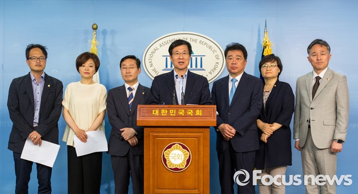 (서울=포커스뉴스) 1일 오후 서울 여의도 국회에서 더불어민주당 공정언론 특위 민주주의회복TF 소속 의원 및 국회 미래창조과학방송통신위원회 소속 의원들이 이정현 새누리당 의원의 청와대 홍보수석 재임시 KBS 보도 개입과 관련해 브리핑 하고 있다.