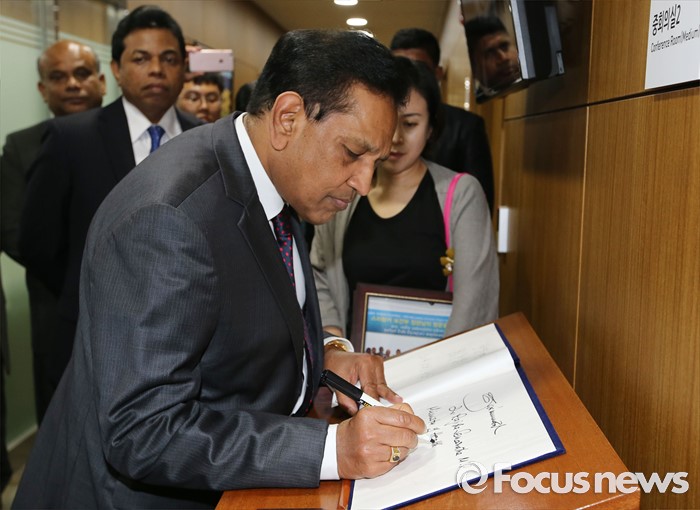 | △ 방명록 작성하는 스리랑카 보건부 장관 |
