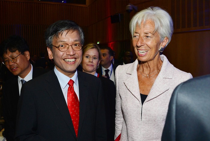 (서울=포커스뉴스) 한국의 파리클럽 정회원 가입 서명식 참석 차 프랑스 파리를 방문중인 최상목 기획재정부 차관이 1일(현지시각) 프랑스 재무부에서 열린 파리클럽 60주년 기념행사에 참석해, 크리스틴 라가르드 IMF 총재와 대화하고 있다. <사진제공=기획재정부>