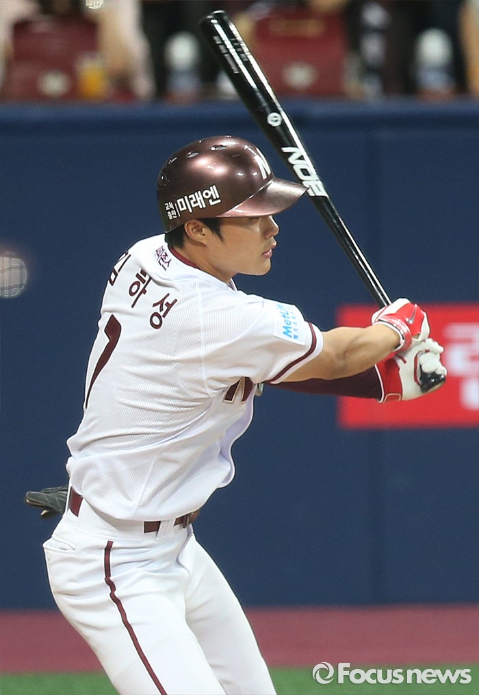 (서울=포커스뉴스) 1일 서울 고척 스카이돔에서 열린 2016 프로야구 KIA-넥센 경기 3회말 무사 만루에서 넥센 김하성이 2타점 좌전 안타를 치고 있다.