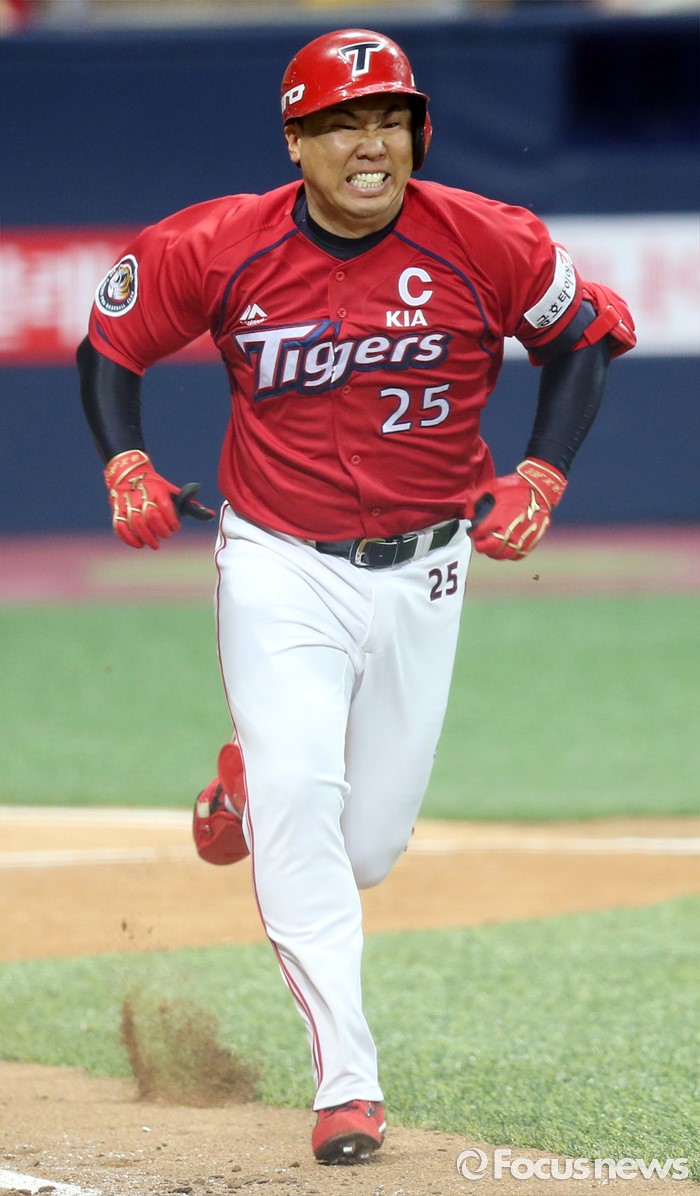 (서울=포커스뉴스) 1일 서울 고척 스카이돔에서 열린 2016 프로야구 KIA-넥센 경기 4회초 KIA 이범호가 3루쪽 내야안타를 치고 1루를 향해 전력질주하고 있다.