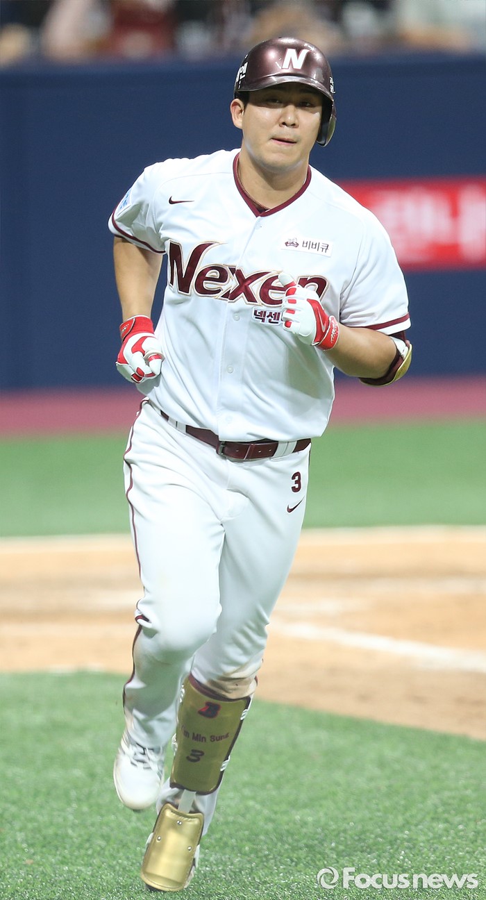 (서울=포커스뉴스) 1일 서울 고척 스카이돔에서 열린 2016 프로야구 KIA-넥센 경기 6회말 2사후 넥센 김민성이 좌월 솔로 홈런을 치고 달려 나가고 있다.
