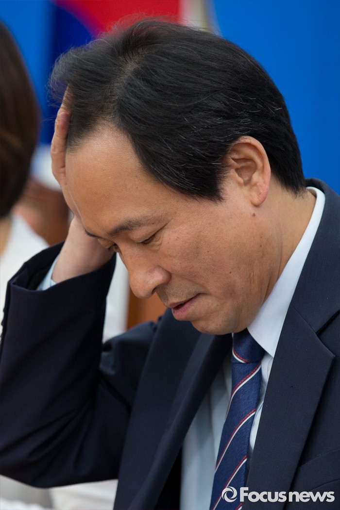 (서울=포커스뉴스) 우상호 더불어민주당 원내대표가 취임 2개월을 맞아 3일 오전 서울 여의도 국회에서 가진 기자간담회에 참석해 머리를 만지고 있다.