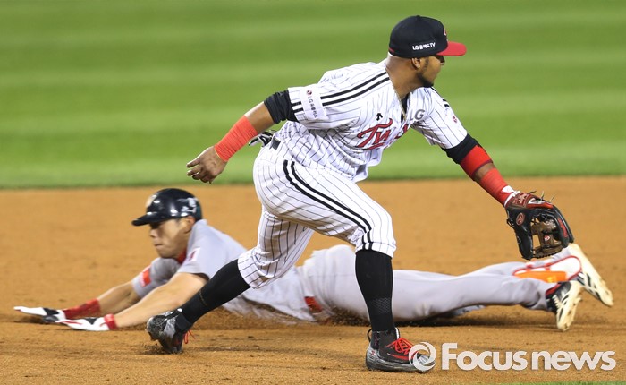 (서울=포커스뉴스) 3일 서울 잠실구장에서 열린 2016 프로야구 SK-LG 경기 8회초 2사후 SK 이명기가 좌중간 3루타를 치고 3루에서 슬라이딩하고 있다.