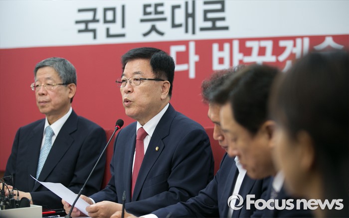 (서울=포커스뉴스) 4일 오전 서울 여의도 새누리당사에서 열린 혁신비상대책위원회의에 참석한 김광림 정책위의장이 발언하고 있다.
