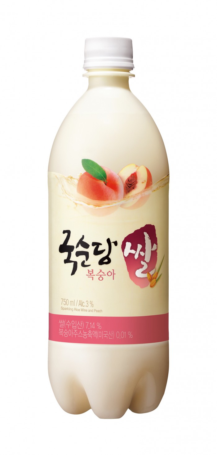 '쌀 복숭아'는 용량 750ml에 알코올 도수는 3%로 주종은 기타주류 이다. 판매가는 대형할인매장 기준으로 1700원이다.복숭아맛 막걸리 '쌀 복숭아'.<사진제공=국순당>