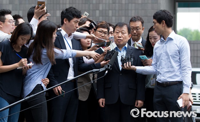 (서울=포커스뉴스) 5조 4천억 원대 회계사기로 대우조선해양 비리 의혹 핵심 인물로 지목된 고재호 전 사장이 4일 오전 서울중앙지방검찰청 부패범죄 특별수사단으로 출석하고 있다.