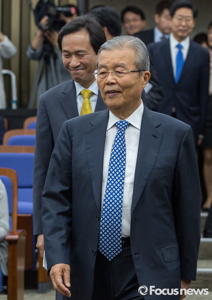 (서울=포커스뉴스) 김종인 더불어민주당 비상대책위 대표와 우상호 원내대표가 4일 오전 서울 여의도 국회에서 열린 의원총회에 참석하기 위해 회의실로 들어서고 있다.