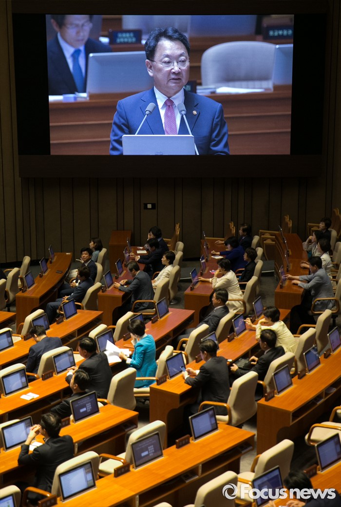 (서울=포커스뉴스) 4일 오전 서울 여의도 국회에서 열린 343회 국회(임시회) 6차 본회의, 경제에 관한 대정부 질문에 참석한 유일호 경제부총리 겸 기획재정부 장관이 이종구 새누리당 의원의 질문에 답하고 있다.