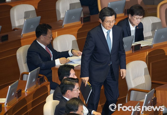 (서울=포커스뉴스) 4일 오전 서울 여의도 국회에서 열린 343회 국회(임시회) 6차 본회의, 경제에 관한 대정부 질문에 참석한 황교안 국무총리가 답변을 위해 단상으로 향하고 있다.