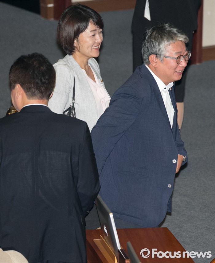 (서울=포커스뉴스) 4일 오전 서울 여의도 국회에서 열린 343회 국회(임시회) 6차 본회의, 경제에 관한 대정부 질문에 참석한 조응천(오른쪽) 더불어민주당 의원이 회의가 정회된 후 의원들과 함께 퇴장하고 있다.