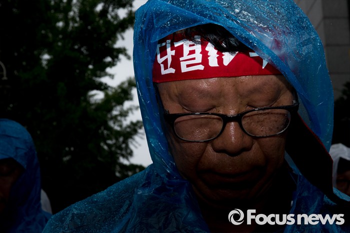 (서울=포커스뉴스) 4일 오후 서울중앙지방법원 앞에서 전국민주노동조합총연맹이 한상균 위원장 석방 판결 촉구 결의대회를 하고 있다.