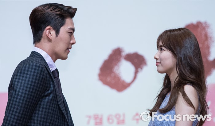 (서울=포커스뉴스) 4일 오후 서울 용산구 하얏트호텔 그랜드볼룸에서 열린 KBS 특별기획드라마 '함부로 애틋하게' 제작발표회에 참석한 배우 김우빈(왼쪽)과 배수지가 포토타임을 갖고 있다.