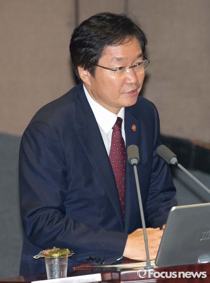 (서울=포커스뉴스) 4일 오후 서울 여의도 국회에서 열린 343회 국회(임시회) 6차 본회의, 경제에 관한 대정부 질문에 참석한 김영석 해양수산부 장관이 정유섭 새누리당 의원의 질문에 답하고 있다.