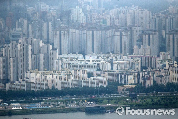 (서울=포커스뉴스) 4일 오후 서울 서초구에 아파트 단지가 보이고 있다. 이날 KB국민은행은 서울 주택 평균 매매가가 6월말 기준 5억 6000만원을 돌파했다고 밝혔다. 또, 서울 주택 평균 매매가가 5억원을 넘긴것은 2008년 조사 이후 이번이 처음이며, 강남권은 재건축의 영향으로 하반기 6억원을 넘어설 것으로 예상했다.