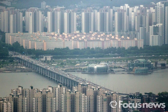 (서울=포커스뉴스) 4일 오후 서울 서초구에 아파트 단지가 보이고 있다. 이날 KB국민은행은 서울 주택 평균 매매가가 6월말 기준 5억 6000만원을 돌파했다고 밝혔다. 또, 서울 주택 평균 매매가가 5억원을 넘긴것은 2008년 조사 이후 이번이 처음이며, 강남권은 재건축의 영향으로 하반기 6억원을 넘어설 것으로 예상했다.