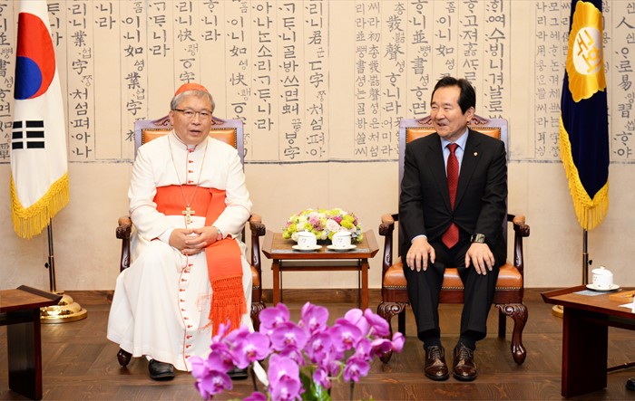 | △ 염수정 추기경과 면담하는 정세균 국회의장 |