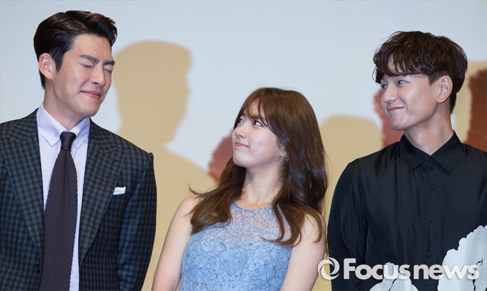 (서울=포커스뉴스) 4일 오후 서울 용산구 하얏트호텔 그랜드볼룸에서 열린 KBS 특별기획드라마 '함부로 애틋하게' 제작발표회에 참석한 배우 김우빈(왼쪽부터), 배수지, 임주환이 포토타임을 갖고 있다.