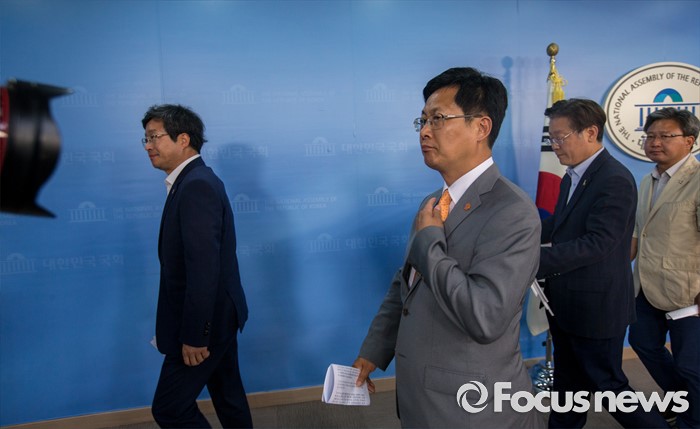 (서울=포커스뉴스) 경기지역 시장들이 4일 오후 서울 여의도 국회에서 행정자치부의 지방재정법 시행령 개정안 입법예고 철회를 촉구하는 기자회견을 마친 뒤 브리핑룸을 나서고 있다. 왼쪽부터 염태영 경기도 수원시장, 최성 경기도 고양시장, 이재명 경기도 성남시장, 채인석 경기도 화성시장.
