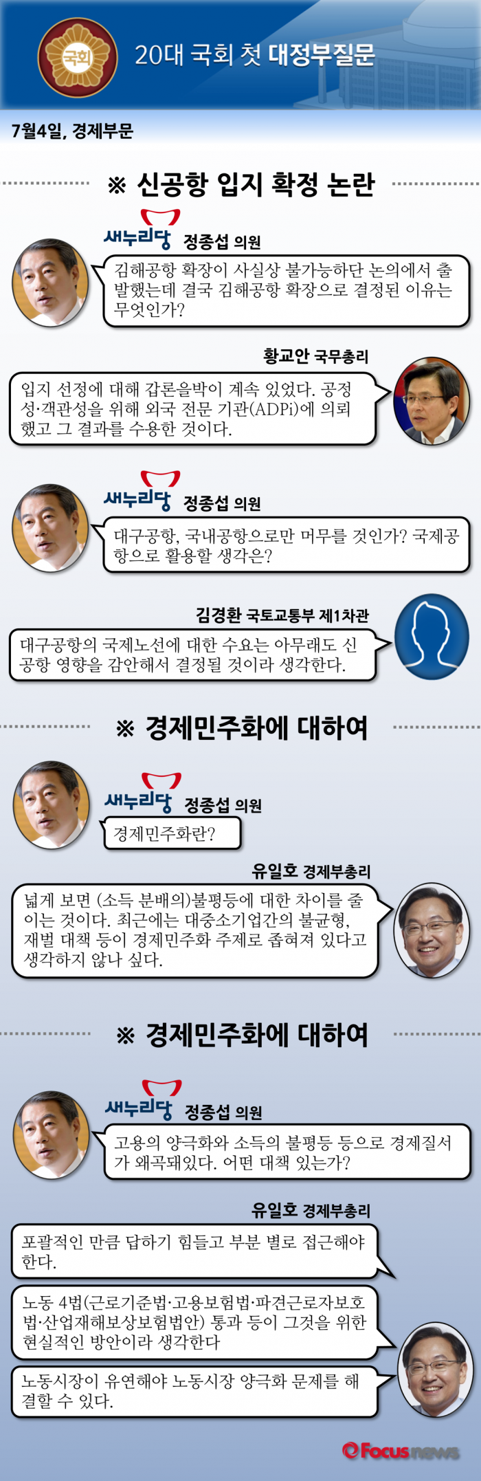 다음은 새누리당 정종섭 의원과 황교안 국무총리·유일호 경제부총리의 질의응답 내용이다.