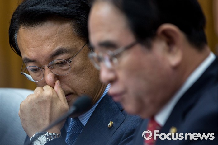 (서울=포커스뉴스) 정진석 새누리당 원내대표가 5일 오전 서울 여의도 국회에서 열린 원내대책회의에 참석해 모두발언을 마친 뒤 생각에 잠겨 있다.