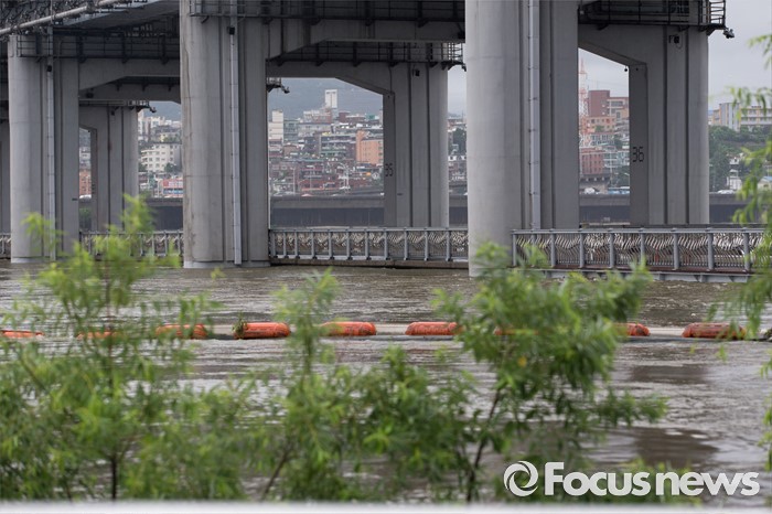 (서울=포커스뉴스) 장마전선이 북상하면서 전국 곳곳에 호우특보가 발표 중인 5일 오전 서울 서초구 잠수교가 통제되고 있다.