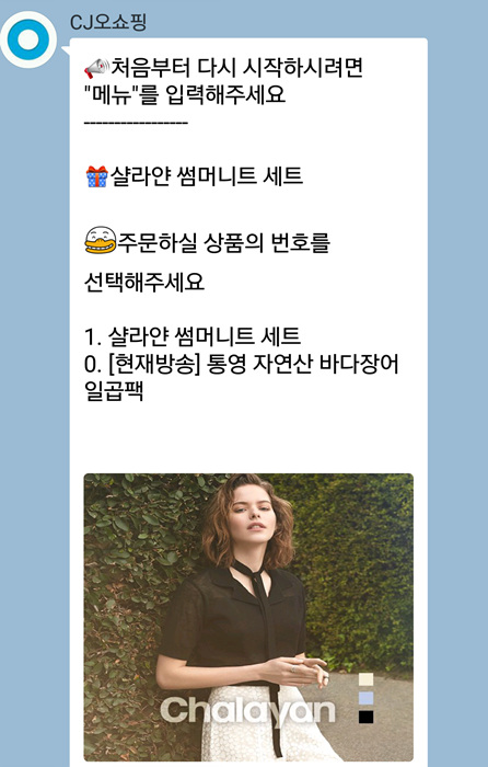 CJ오쇼핑의 '톡주문'은 카카오친구 플러스친구에 CJ오쇼핑을 추가한 뒤 1:1 채팅을 통해 상품을 주문하는 서비스다. 상담원과 통화할 필요도, ARS 음성안내 단계를 하나하나 밟을 필요도 없기 때문에 극도의 편리함을 누릴 수 있다.
