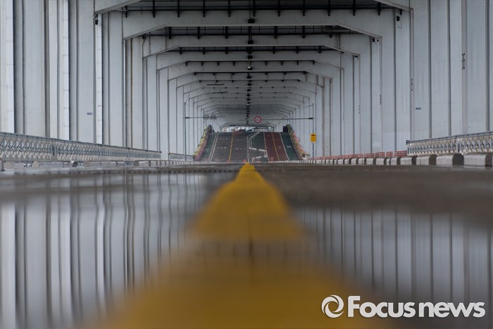 (서울=포커스뉴스) 장마전선이 북상하면서 전국 곳곳에 호우특보가 발표 중인 5일 오전 서울 서초구 잠수교가 통제되고 있다.