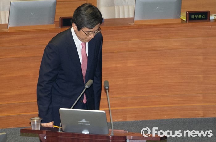 (서울=포커스뉴스) 5일 오전 서울 여의도 국회에서 열린 343회 국회(임시회) 7차 본회의, 정치·외교·통일·안보·교육·사회·문화에 관한 질문에 참석한 황교안 국무총리가 의원들의 질문에 답하기 위해 이동하며 인사하고 있다.