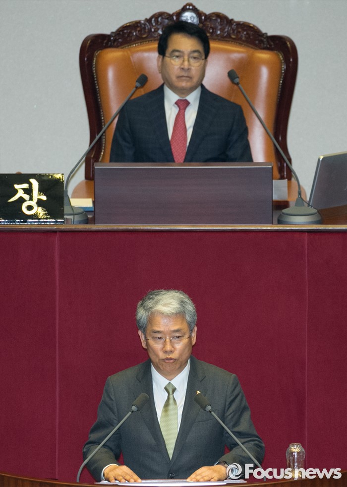 (서울=포커스뉴스) 5일 오후 서울 여의도 국회에서 열린 343회 국회(임시회) 7차 본회의, 정치·외교·통일·안보·교육·사회·문화에 관한 질문에 참석한 김동철 국민의당 의원이 언쟁과 관련 사과 발언을 하고 있다. 이날 대정부 질문은 이장우 새누리당 의원 등과 김동철 국민의당 의원의 언쟁으로 오전 회의가 정회됐었다.
