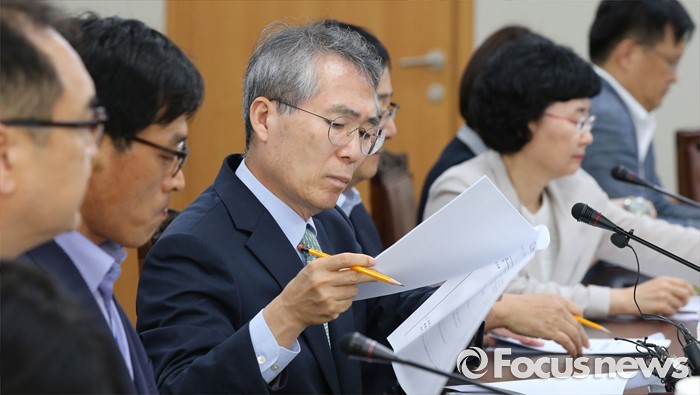 (세종=포커스뉴스) 5일 세종시 정부세종청사 고용노동부 최저임금위원회에서 열린 제9차 전원회에서 박준성 위원장이 회의자료를 살피고 있다.