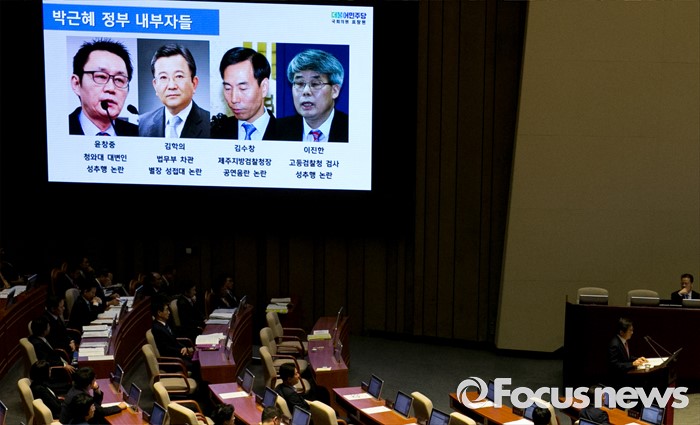 (서울=포커스뉴스) 5일 오후 서울 여의도 국회에서 열린 343회 국회(임시회) 7차 본회의, 정치·외교·통일·안보·교육·사회·문화에 관한 질문에 참석한 표창원 더불어민주당 의원이 황교안 국무총리에게 박근혜 정부 공직자들의 성범죄 논란과 관련 질문하고 있다.