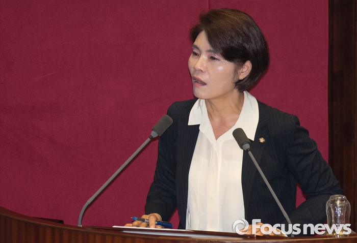 (서울=포커스뉴스) 5일 오후 서울 여의도 국회에서 열린 343회 국회(임시회) 7차 본회의, 정치·외교·통일·안보·교육·사회·문화에 관한 질문에 참석한 한정애 더불어민주당 의원이 기업 하청업체 근로자들과 관련 황교안 국무총리에게 질문하고 있다.
