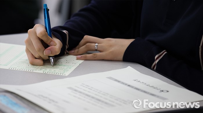 (서울=포커스뉴스) 7월 전국연합학력평가가 실시된 6일 오전 서울 은평구 신도고등학교에서 한 3학년 학생이 1교시 국어영역 시험 답안지를 작성하고 있다.