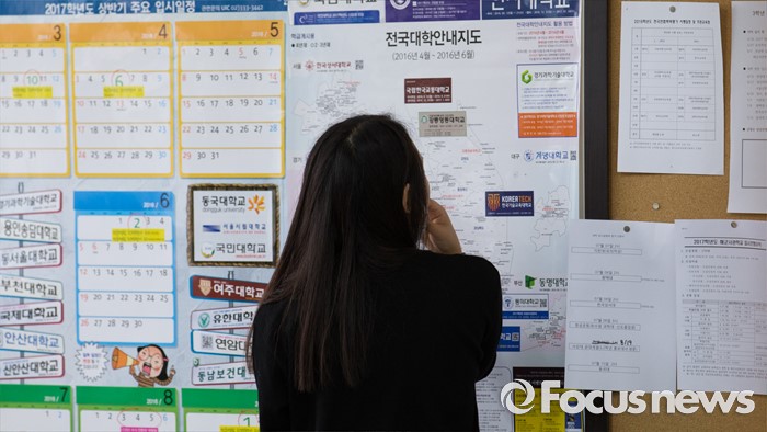 (서울=포커스뉴스) 6일 오전 서울 은평구 신도고등학교에서 3학년 학생이 2016학년도 7월 전국연합학력평가 시험 전 전국대학안내지도를 바라보고 있다.