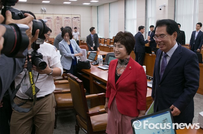 (서울=포커스뉴스) 6일 오전 서울 여의도 국회에서 윤리특별위원회 전체회의를 마친 백재현(오른쪽) 위원장과 전혜숙 더불어민주당 간사가 퇴장하고 있다.