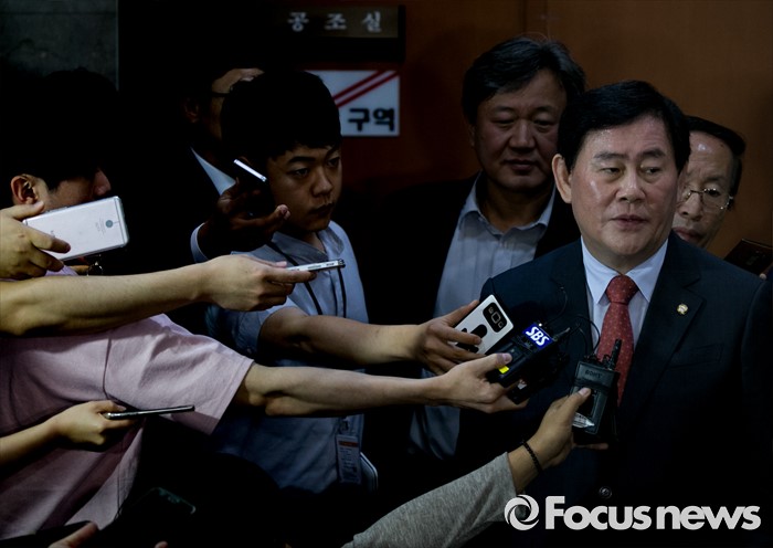 (서울=포커스뉴스) 최경환 새누리당 의원이 6일 오전 서울 여의도 국회 정론관에서 8·9 전당대회 불출마 기자회견을 마친 뒤 취재진 질문에 답하고 있다.