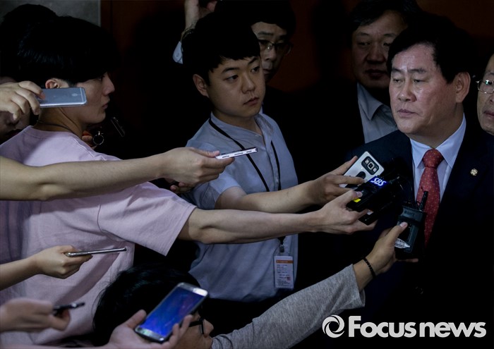 (서울=포커스뉴스) 최경환 새누리당 의원이 6일 오전 서울 여의도 국회 정론관에서 8·9 전당대회 불출마 기자회견을 마친 뒤 취재진 질문에 답하고 있다.