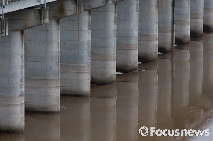 (연천=포커스뉴스) 북한이 황강댐을 방류한 6일 오전 경기도 연천군 군남홍수조절지에서 한국수자원공사가 수위조절을 위해 임진강 강물을 방류하고 있다.