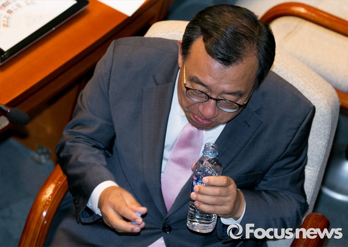 (서울=포커스뉴스) 6일 오전 서울 여의도 국회에서 열린 예산결산특별위원회 전체회의에 참석한 이정현 새누리당 의원이 물을 마시고 있다.